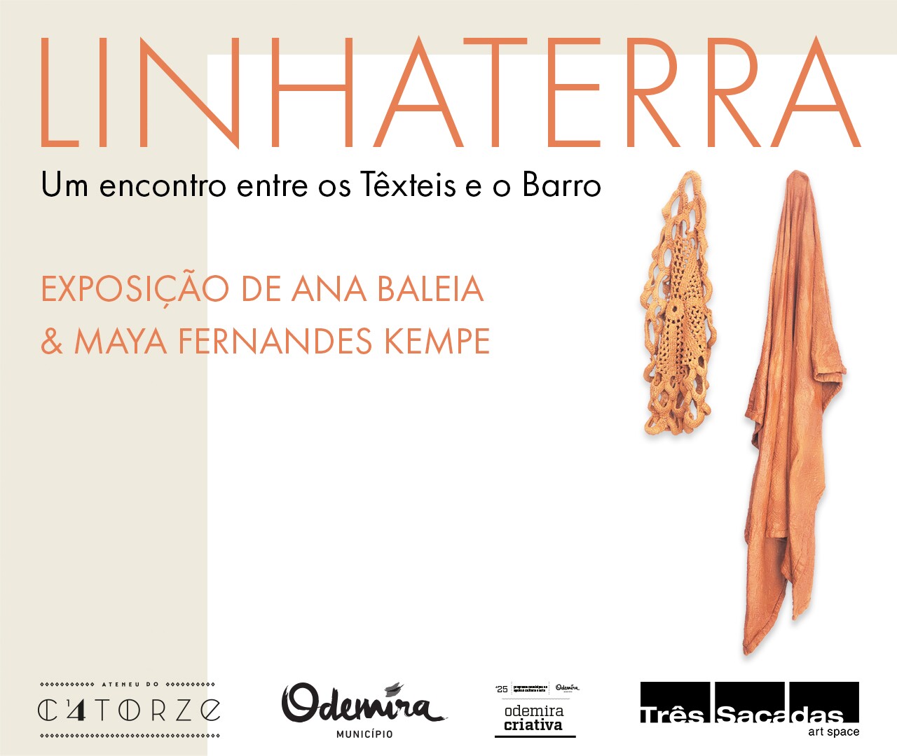 "LINHATERRA", de Ana Baleia e Maya Fernanda Kempe, é uma exposição que resulra do encontro entre têxteis e barro. As artistas exploram o diálogo entre matéria e gesto, revelando novas possibilidades de encontro entre terra e linha.